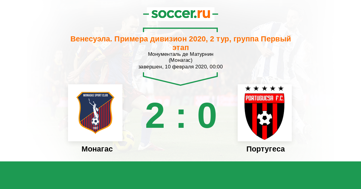 Венесуэла. Примера дивизион 09.11.2020 Монагас Логотип футбольный клуб Монагас (Матурин) 1:0 Логотип футбольный клуб Португеса (Акаригуа) Португеса
