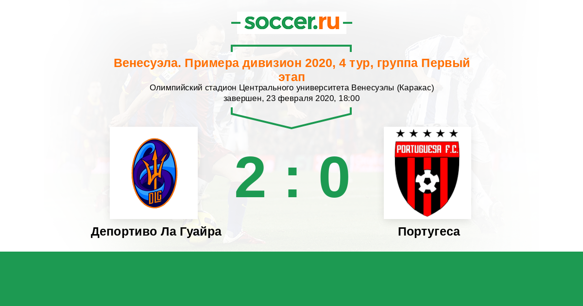 Венесуэла. Примера дивизион 20.02.2016 Португеса Логотип футбольный клуб Португеса (Акаригуа) 1:1 Логотип футбольный клуб Депортиво Ла Гуайра (Каракас) Депортиво Ла Гуайра