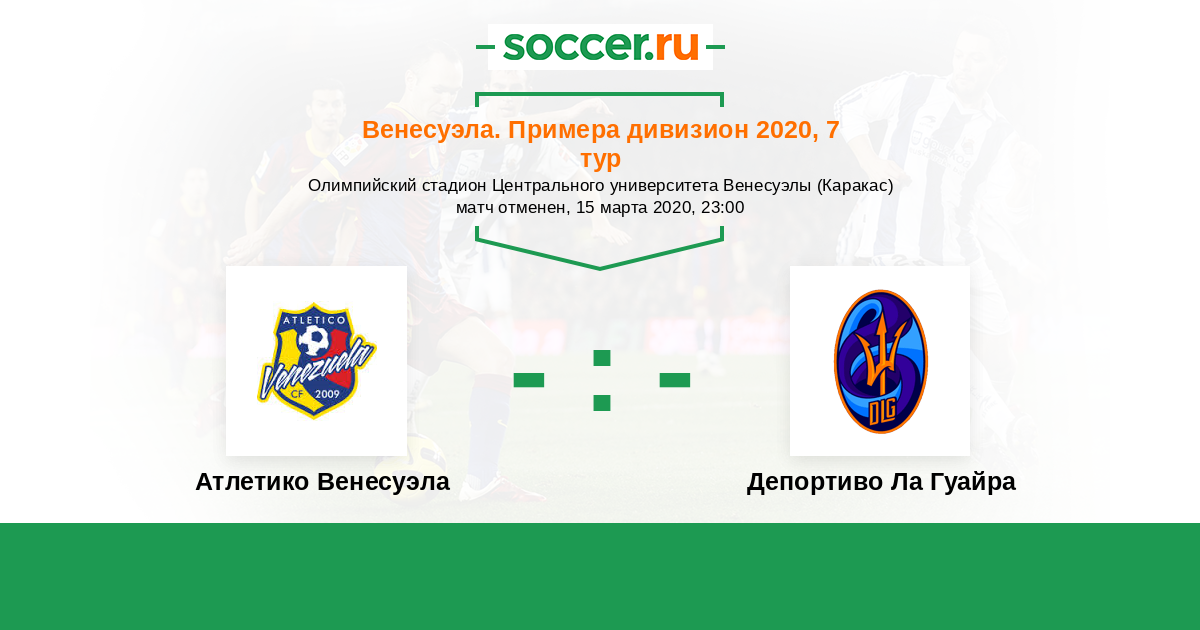 Венесуэла. Примера дивизион 22.03.2015 Атлетико Венесуэла Логотип Атлетико Венесуэла (Майкуетья) 1:1 Логотип футбольный клуб Депортиво Ла Гуайра (Каракас) Депортиво Ла Гуайра
