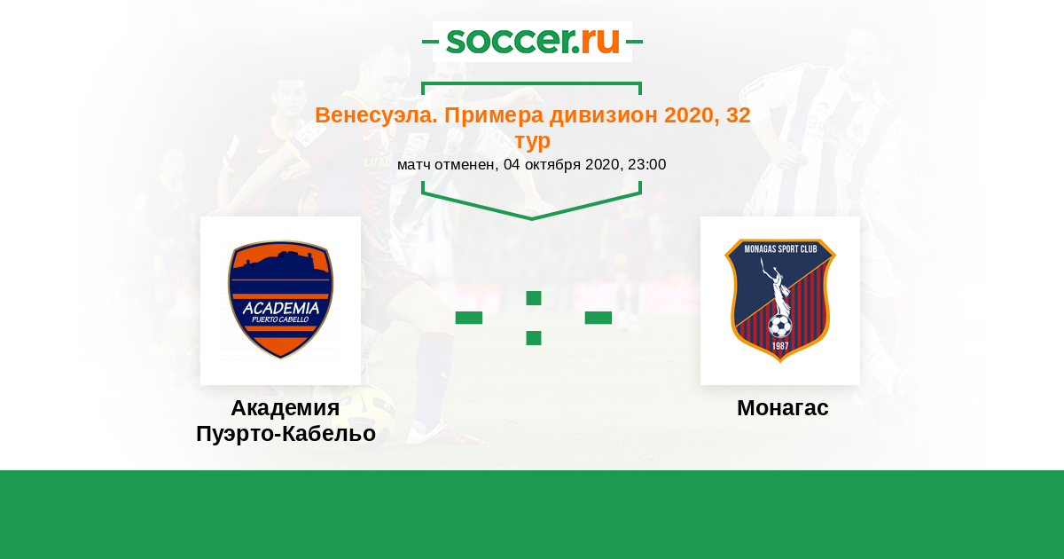 Венесуэла. Примера дивизион 15.04.2022 Пуэрто-Кабельо Логотип футбольный клуб Пуэрто-Кабельо 0:2 Логотип футбольный клуб Монагас (Матурин) Монагас
