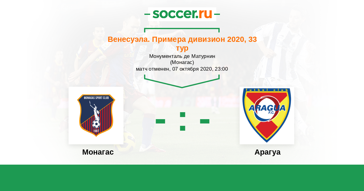 Венесуэла. Примера дивизион 06.11.2020 Монагас Логотип футбольный клуб Монагас (Матурин) 1:0 Логотип Арагуа (Маракай) Арагуа