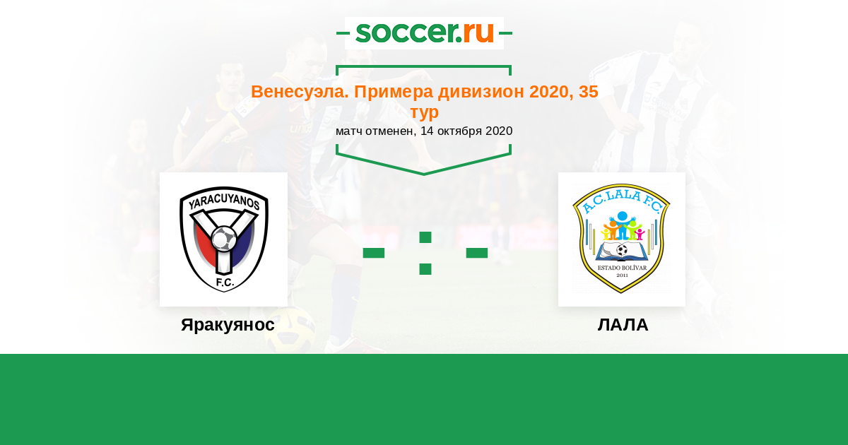 Венесуэла. Сегунда 22.10.2016 Яракуянос Логотип футбольный клуб Яракуянос (Сан Фелипе) 0:0 Логотип футбольный клуб ЛАЛА (Карони) ЛАЛА
