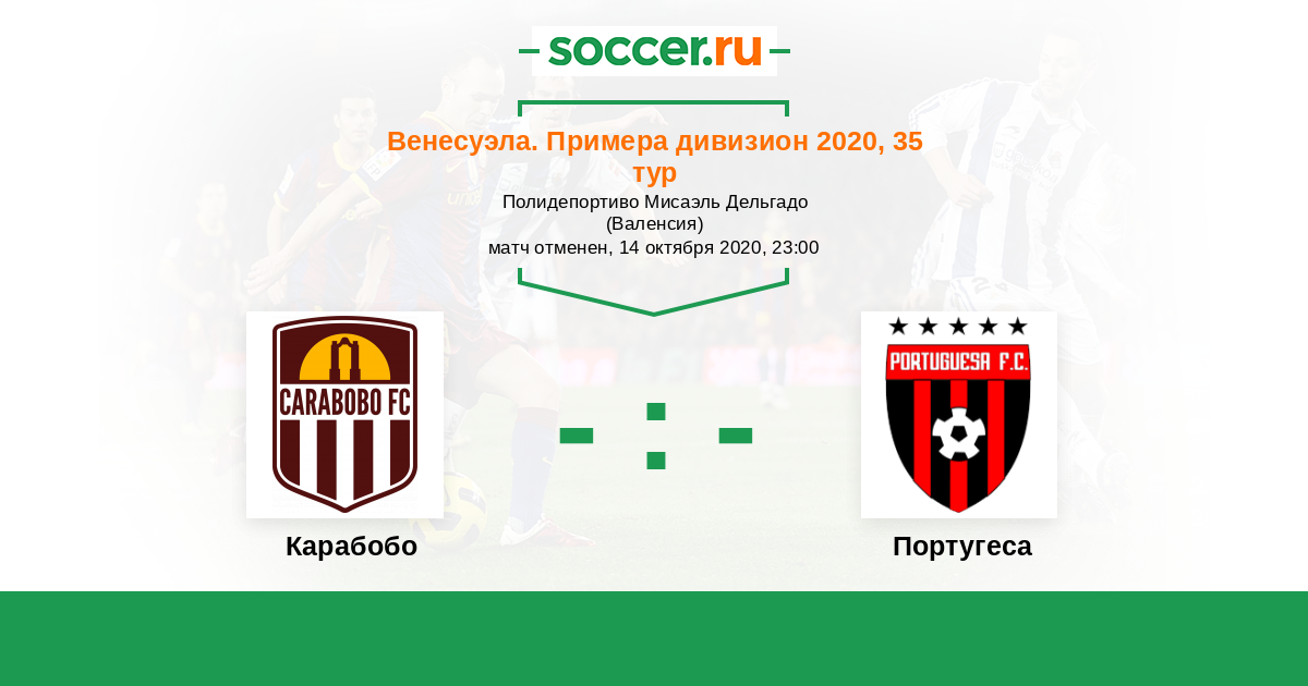 Венесуэла. Примера дивизион 21.10.2018 Португеса Логотип футбольный клуб Португеса (Акаригуа) 1:0 Логотип футбольный клуб Карабобо (Валенсия) Карабобо