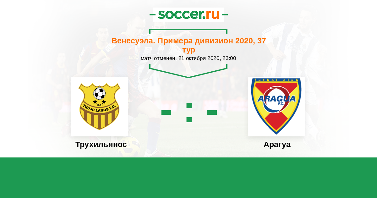 Венесуэла. Примера дивизион 29.07.2018 Трухильянос Логотип футбольный клуб Трухильянос (Валера) 2:0 Логотип Арагуа (Маракай) Арагуа