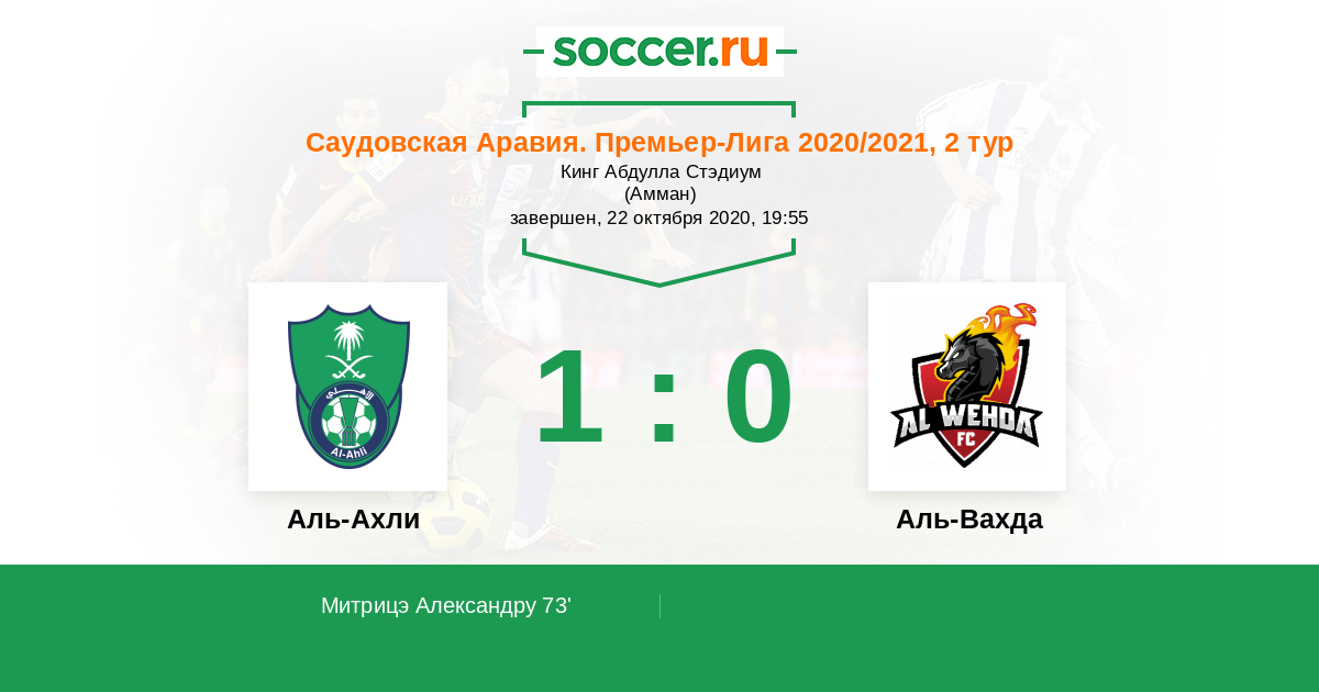 Протокол матча Аль-Ахли против Аль-Вахда