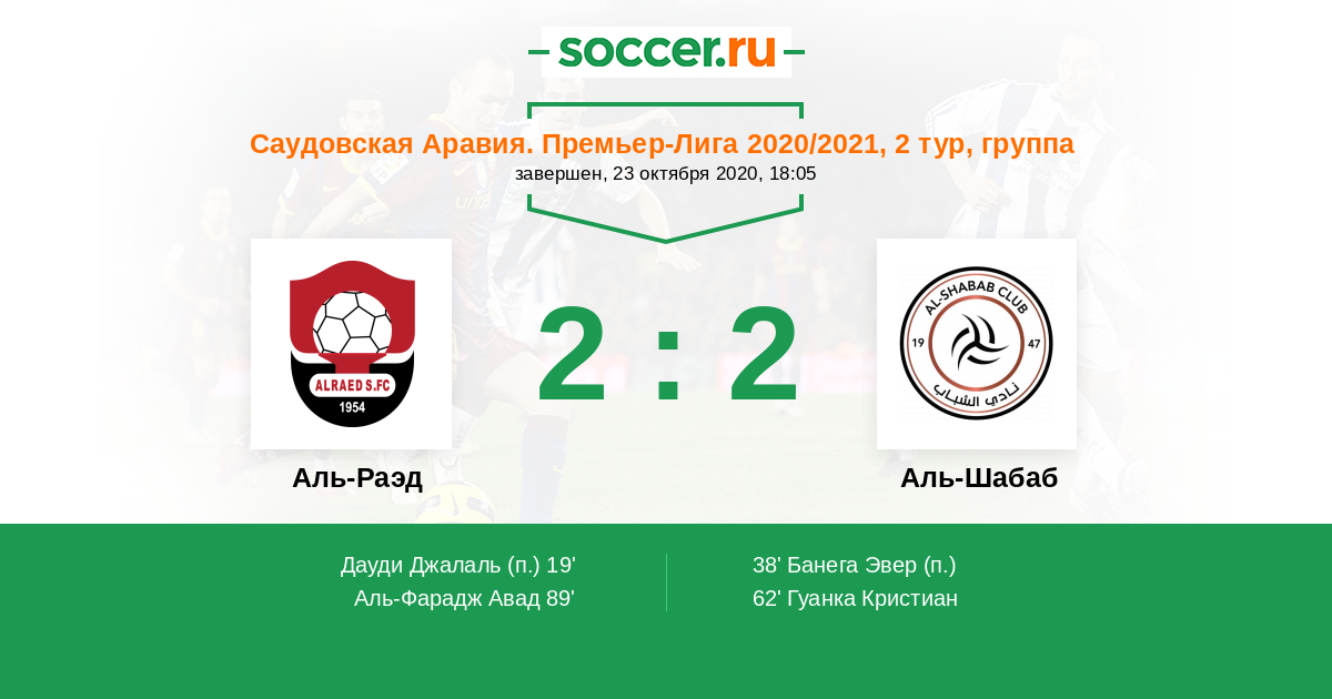 Протокол матча Аль-Раэд против Аль-Шабаб
