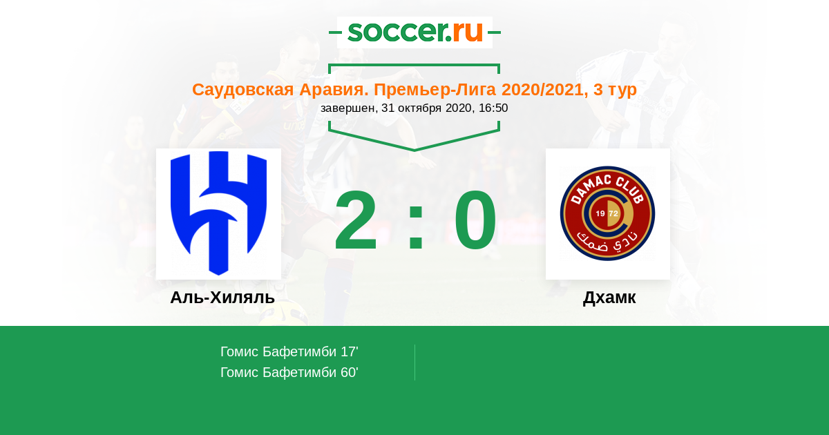 60' (2:0) Гомис Бафетимби (18) (Аль-Бурайк Мухаммед (2))