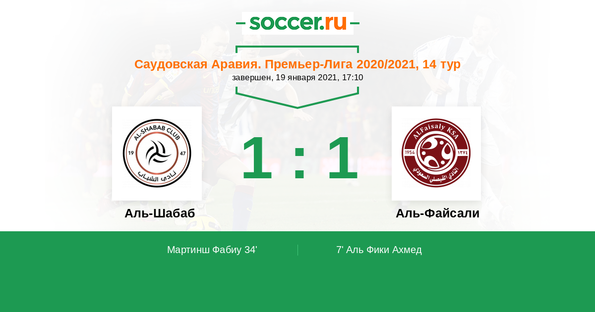 Протокол матча Аль-Шабаб против Аль-Файсали