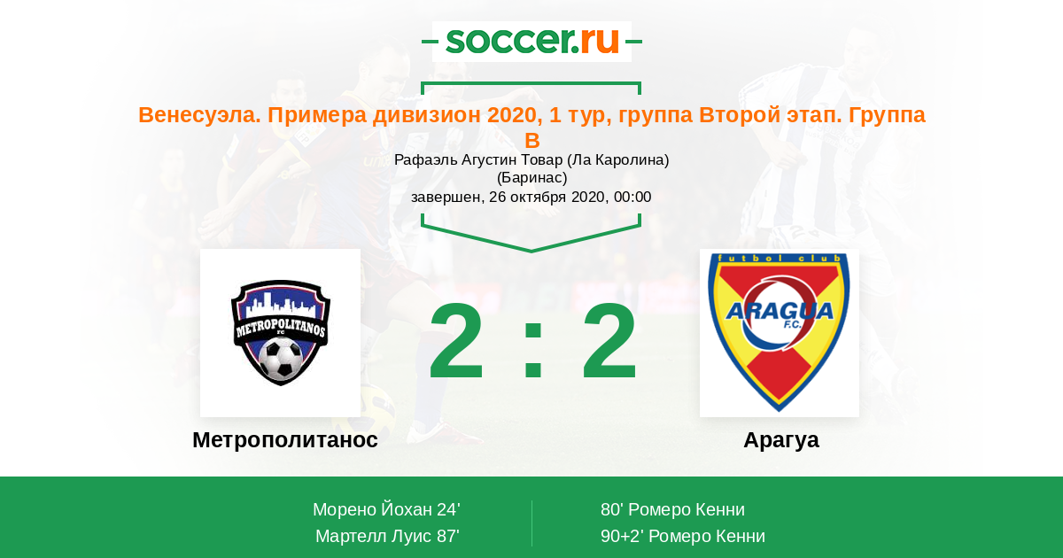 Протокол матча Метрополитанос против Арагуа