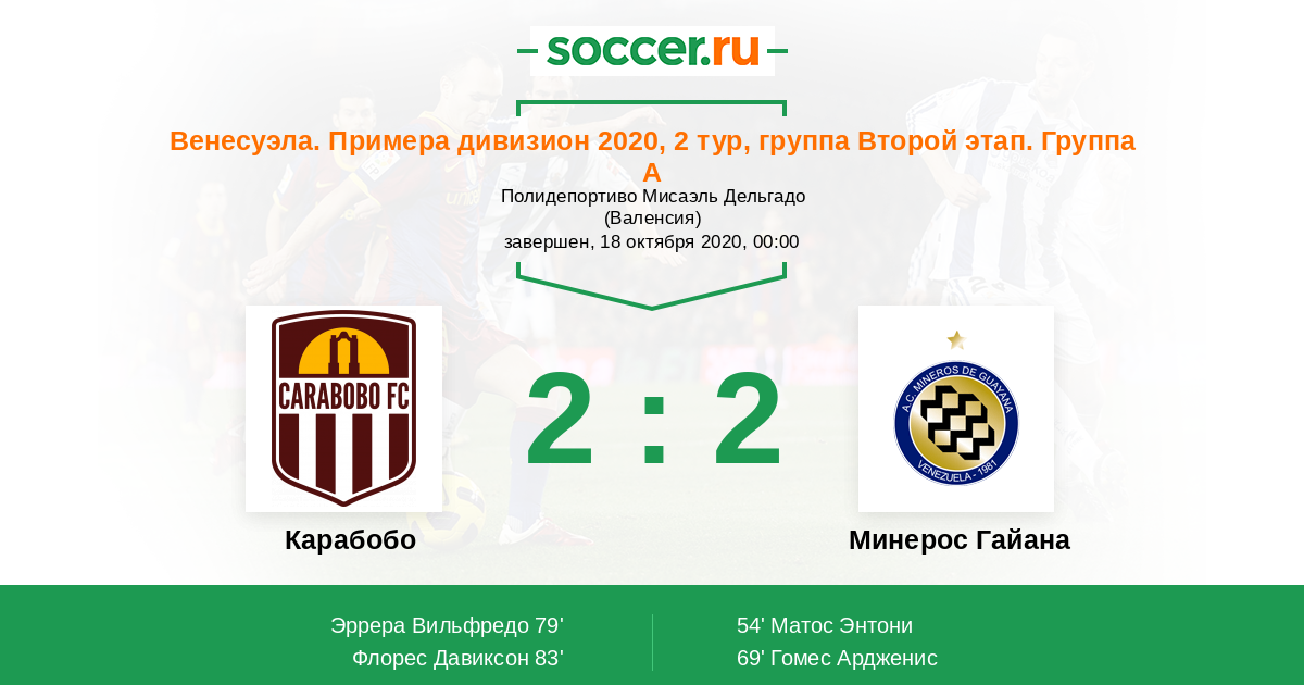 Протокол матча Карабобо против Минерос Гайана