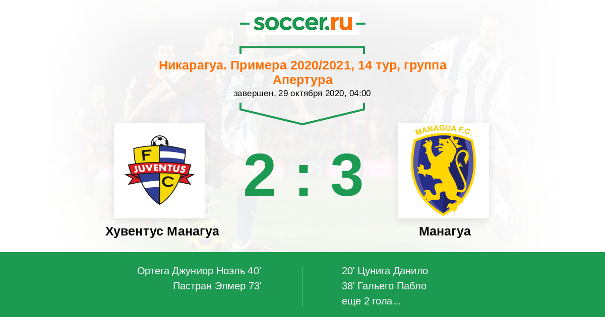 Протокол матча Хувентус Манагуа против Манагуа