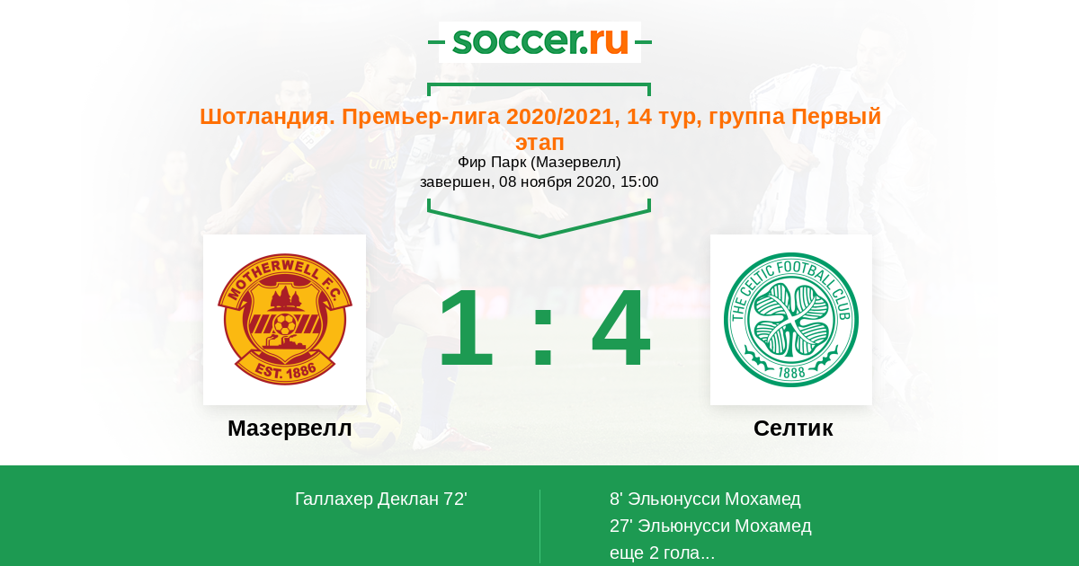 Протокол матча Мазервелл против Селтик