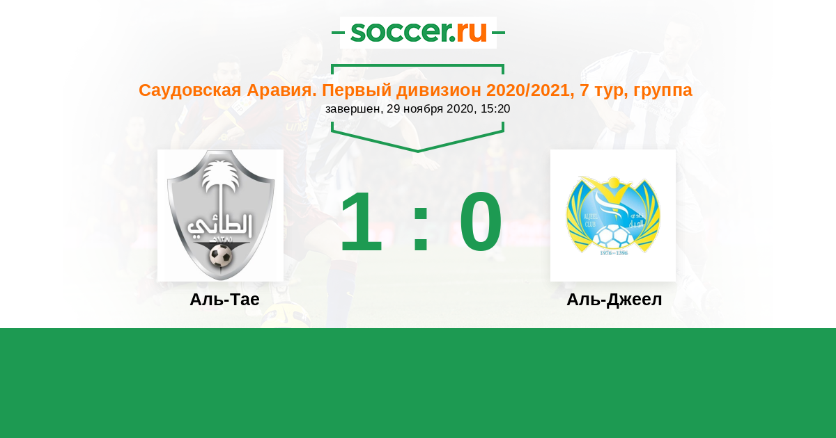 Саудовская Аравия. Первый дивизион 10.09.2020 Аль-Джеел Логотип футбольный клуб Аль-Джеел (Аль-Хаса) 1:0 Логотип футбольный клуб Аль-Тае (Хаиль) Аль-Тае