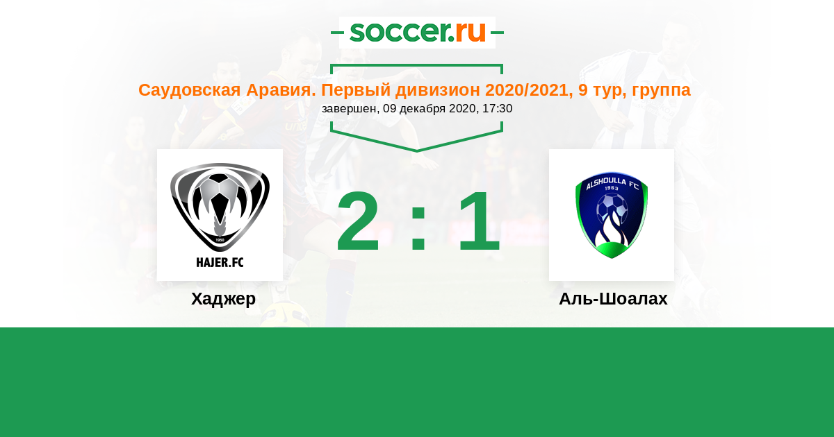 Саудовская Аравия. Первый дивизион 25.03.2021 Аль-Шоалах Логотип футбольный клуб Аль-Шоалах (Эль-Хардж) 0:0 Логотип футбольный клуб Хаджер (Эль-Хофуф) Хаджер