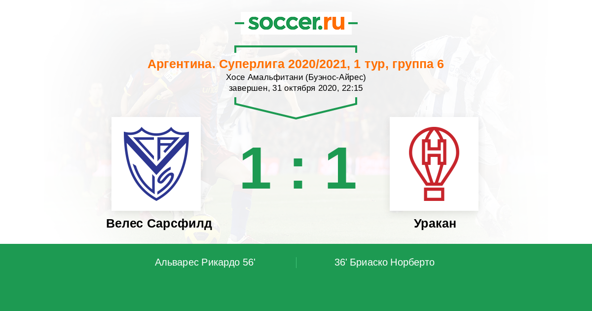 Протокол матча Велес Сарсфилд против Уракан
