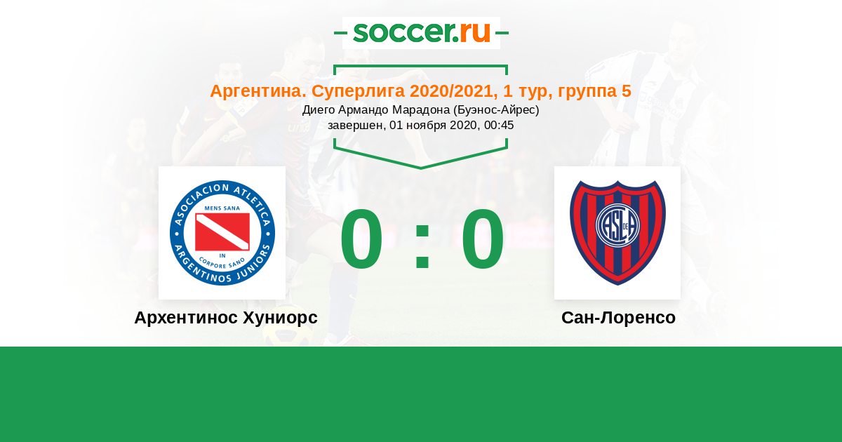 Протокол матча Архентинос Хуниорс против Сан-Лоренсо