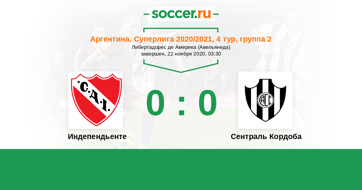 Протокол матча Индепендьенте против Сентраль Кордоба