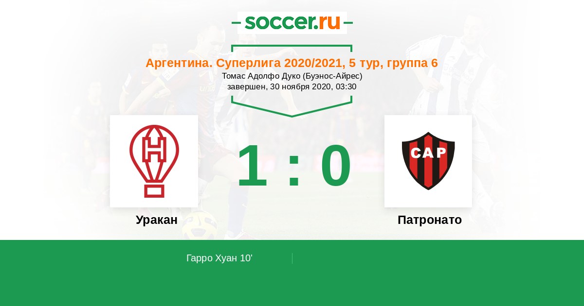 Протокол матча Уракан против Патронато