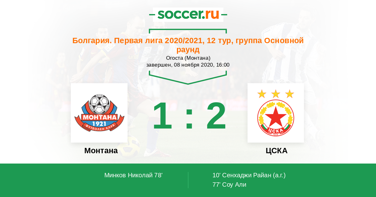 Протокол матча Монтана против ЦСКА