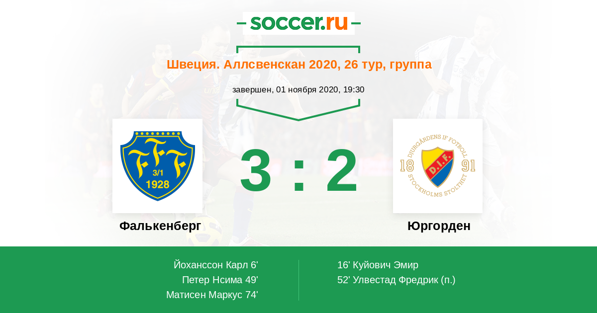 Протокол матча Фалькенберг против Юргорден