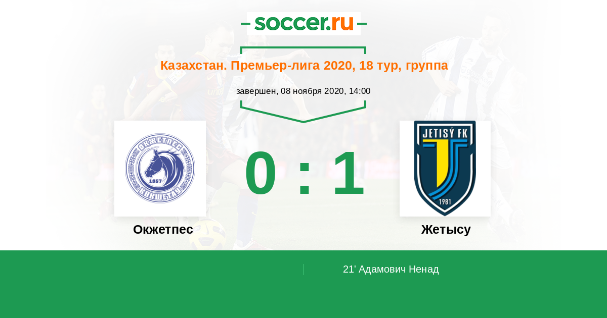 Протокол матча Окжетпес против Жетысу
