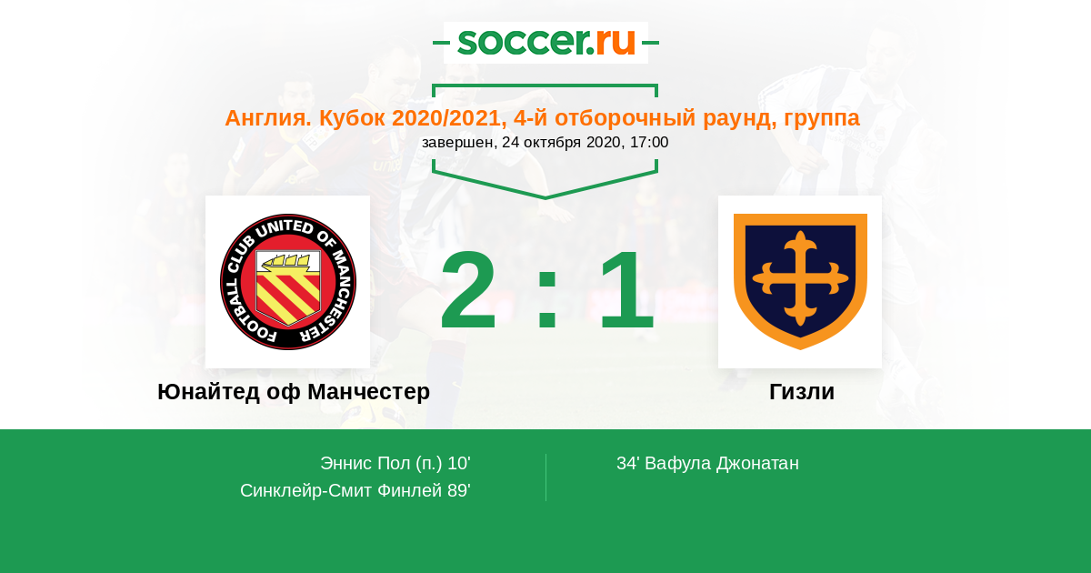 Протокол матча Юнайтед оф Манчестер против Гизли