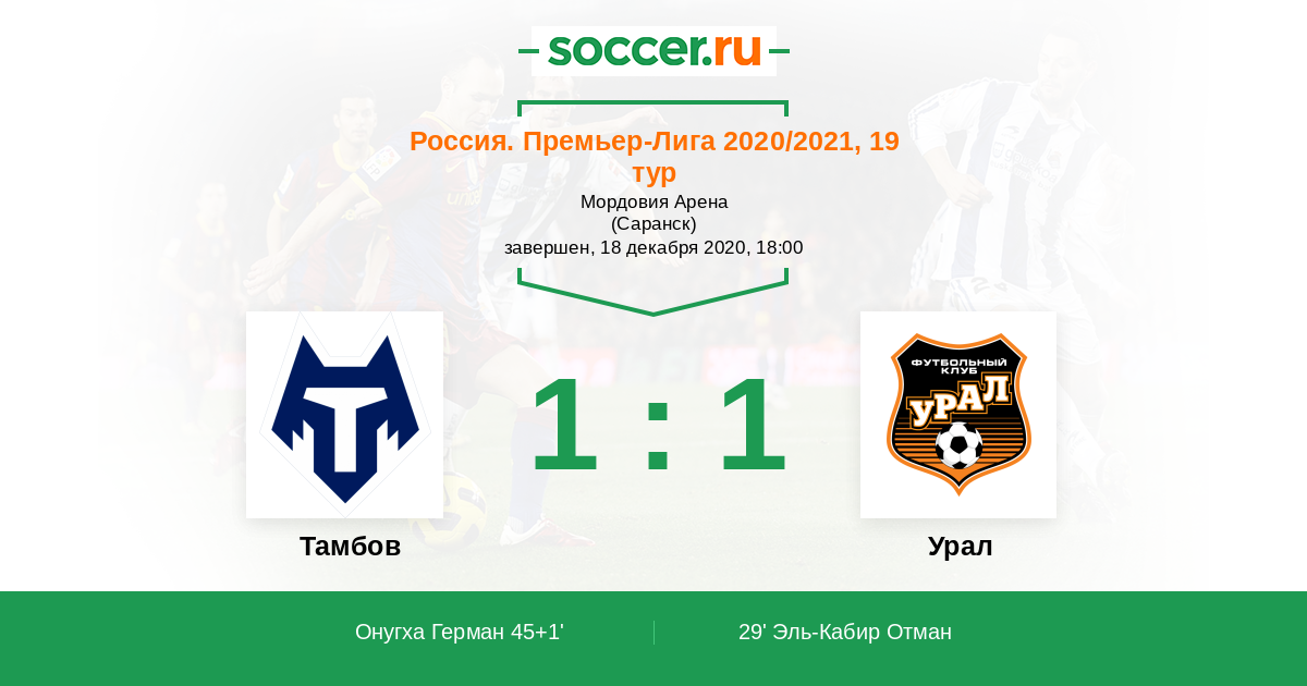Нужно отдать должное "Тамбову", несмотря ни на что команда условно руки не опускает и игры с безразличием по отношению к результату не показывает. Вот и сегодня рубились и были ничем не хуже "Урала", заработали один балл в таблицу. А ведь могли и победить, но защитники дважды спасали пустые ворота после ударов тамбовчан. Правда до этого и Эль Кабир показал как не нужно исполнять пенальти. В целом наверное ничья закономерный итог матча. Правда особых дивидендов она ни тем, ни другим не принесла. Как всегда личное мнение.
