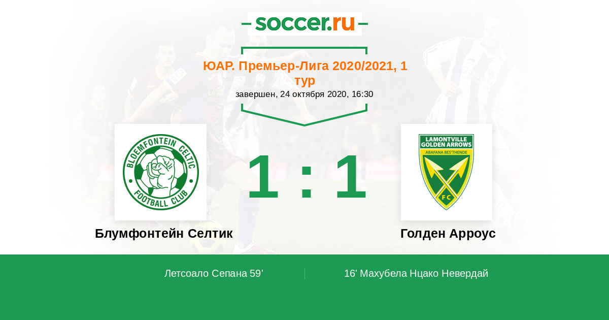 Протокол матча Блумфонтейн Селтик против Голден Арроус