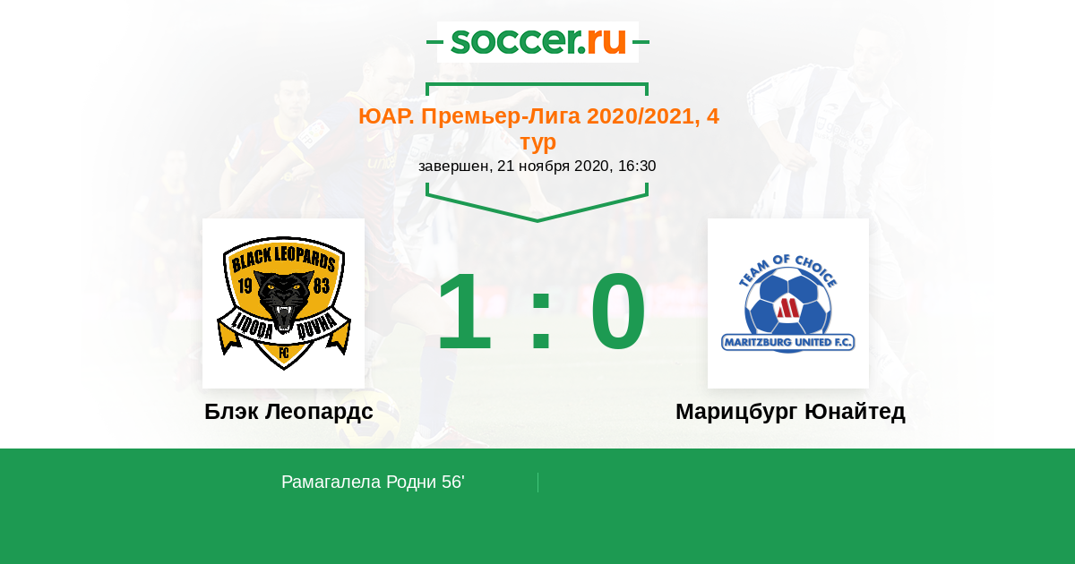 Протокол матча Блэк Леопардс против Марицбург Юнайтед