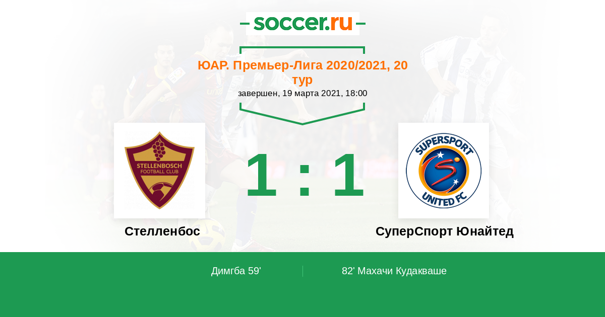 Протокол матча Стелленбос против СуперСпорт Юнайтед