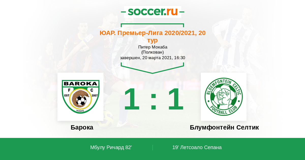 Протокол матча Барока против Блумфонтейн Селтик