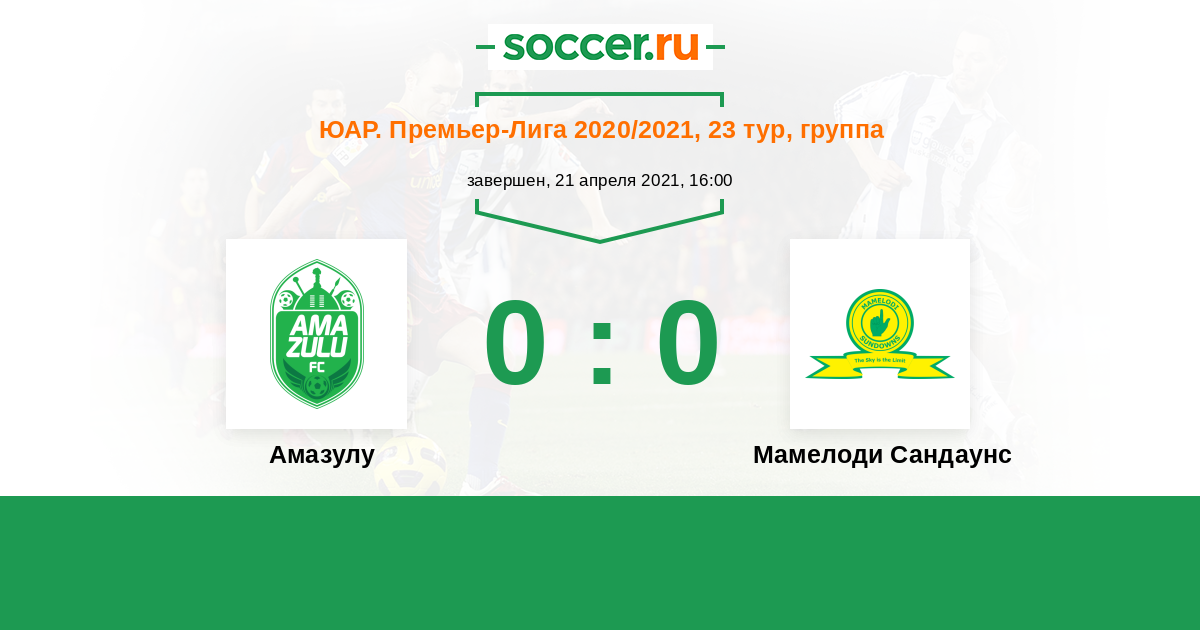 Протокол матча Амазулу против Мамелоди Сандаунс