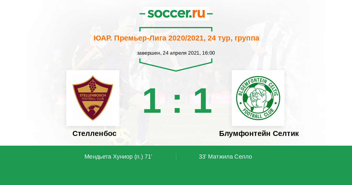 Протокол матча Стелленбос против Блумфонтейн Селтик