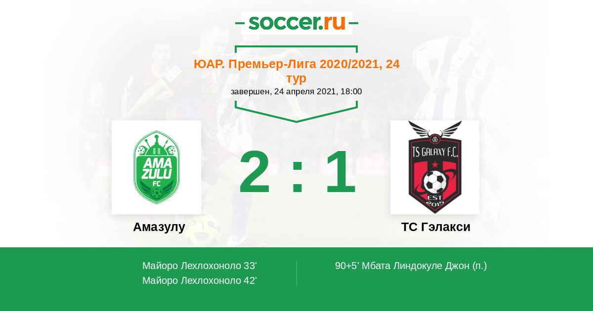 33' (1:0) Майоро Лехлохоноло (20) (Мемела Амиго (15))