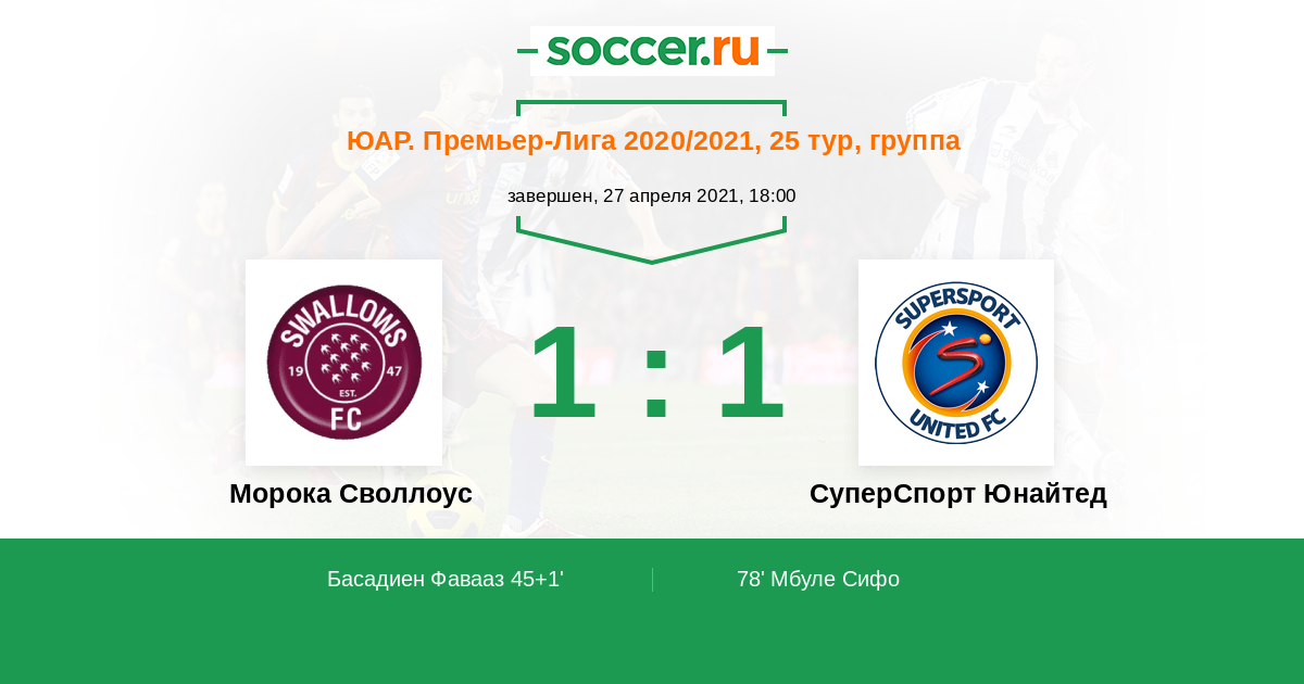 Протокол матча Морока Своллоус против СуперСпорт Юнайтед