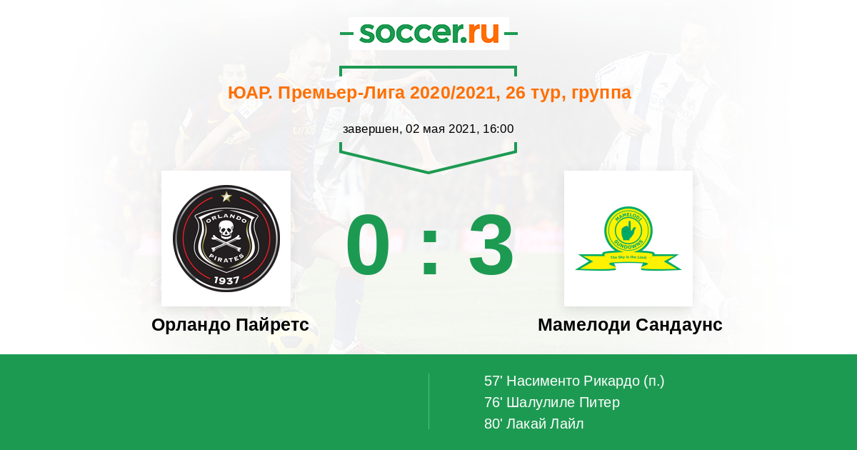 Протокол матча Орландо Пайретс против Мамелоди Сандаунс