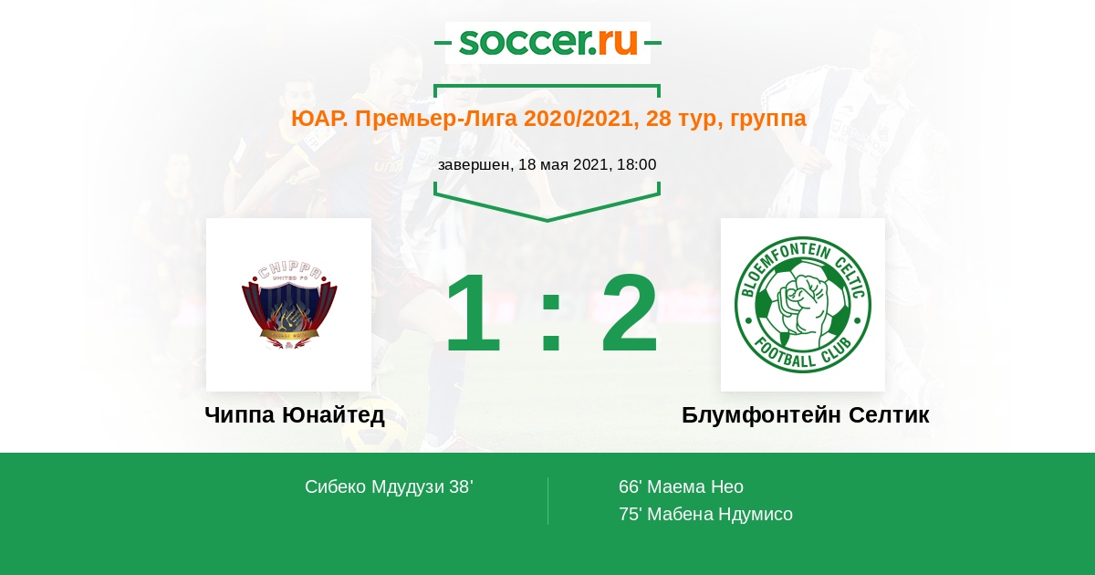Протокол матча Чиппа Юнайтед против Блумфонтейн Селтик