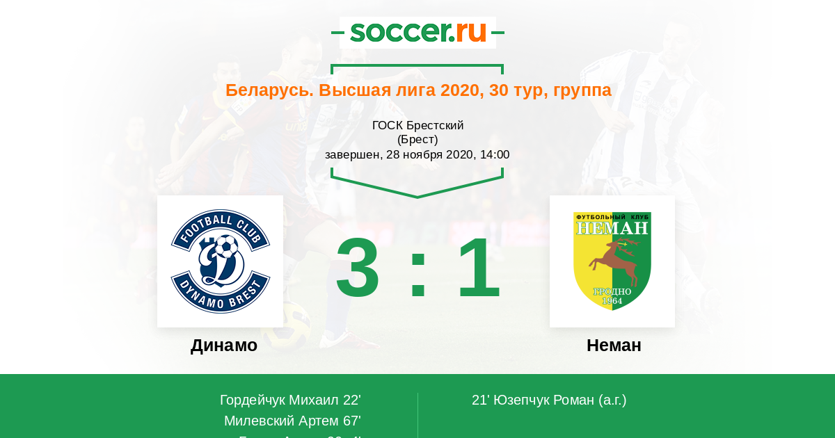 Протокол матча Динамо против Неман