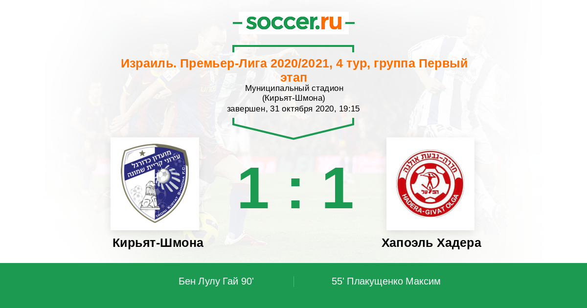 Протокол матча Кирьят-Шмона против Хапоэль Хадера