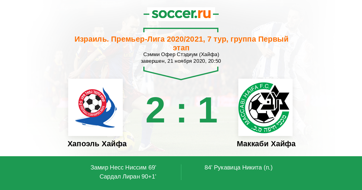 Протокол матча Хапоэль Хайфа против Маккаби Хайфа