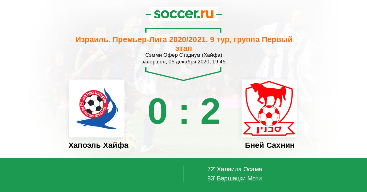 Протокол матча Хапоэль Хайфа против Бней Сахнин