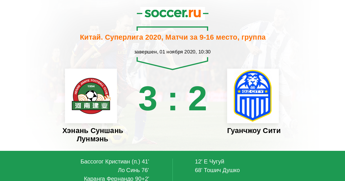 Протокол матча Хэнань Суншань Лунмэнь против Гуанчжоу Сити