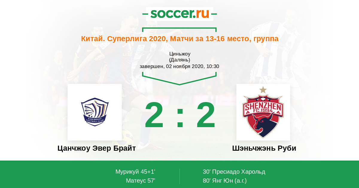 Протокол матча Цанчжоу Эвер Брайт против Шэньчжэнь Руби