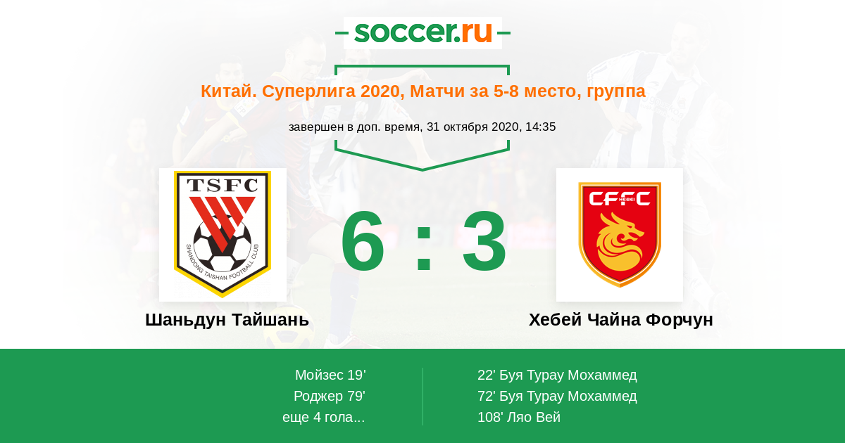 Протокол матча Шаньдун Тайшань против Хебей Чайна Форчун