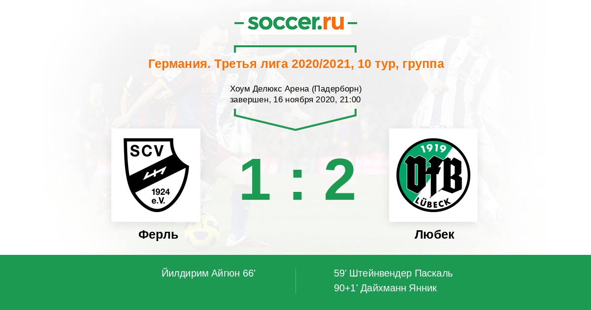 Протокол матча Ферль против Любек