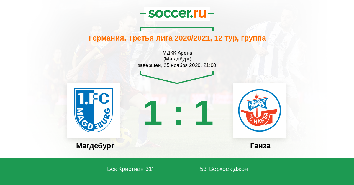Протокол матча Магдебург против Ганза