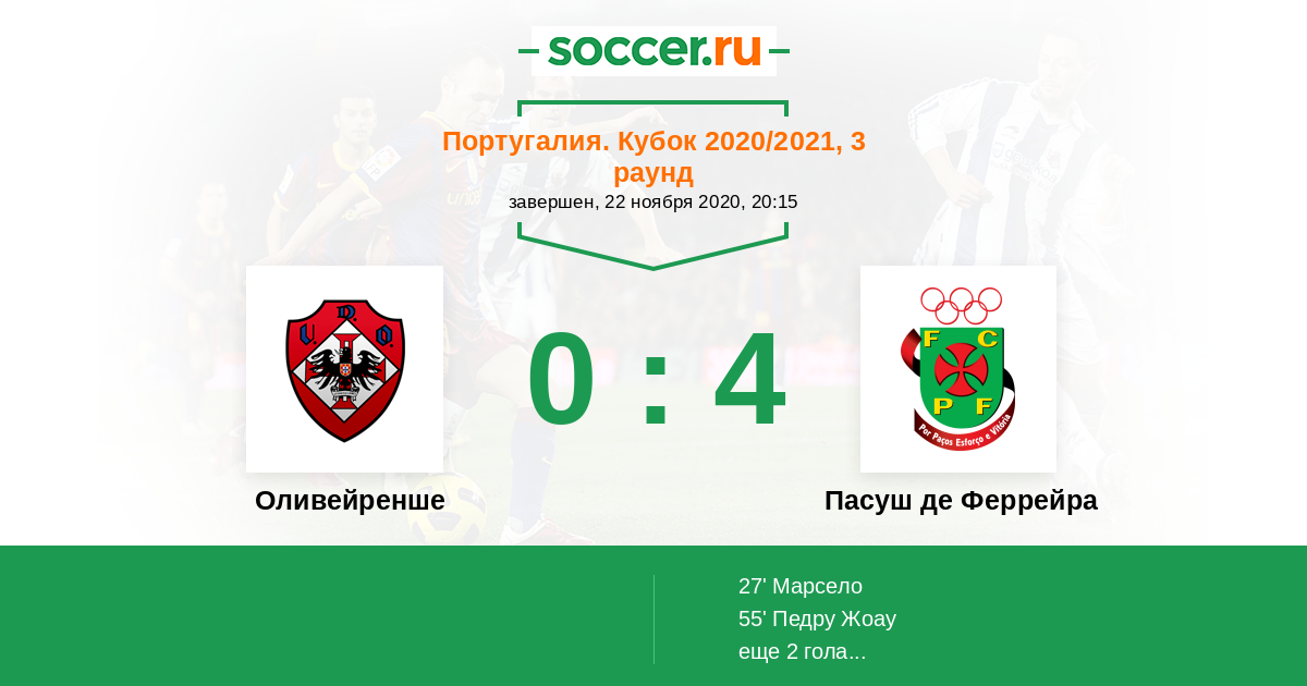 Протокол матча Оливейренше против Пасуш де Феррейра
