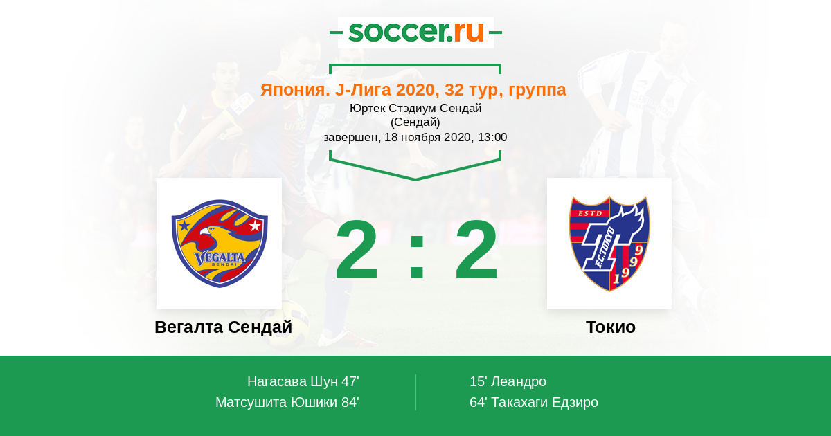 15' (0:1) Леандро (20) (Нагаи Кенсуке (11))