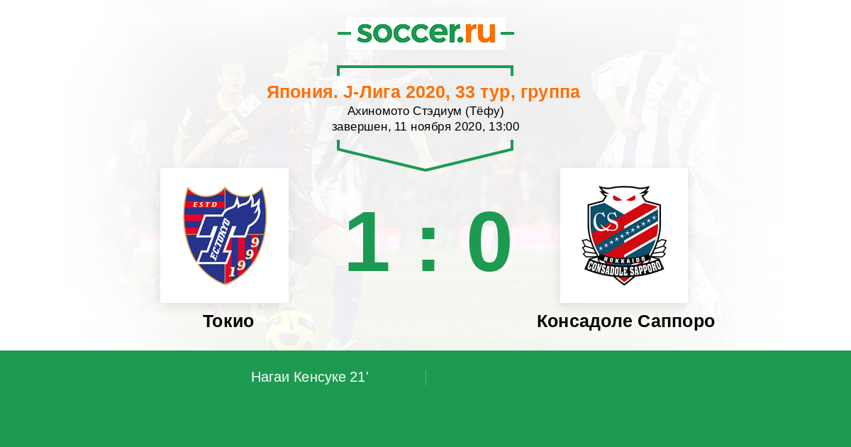 21' (1:0) Нагаи Кенсуке (11) (Абе Шуто (31))