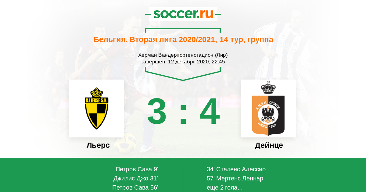 Протокол матча Льерс против Дейнце
